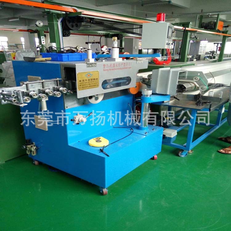 一、用途:本機可與押出機配套聯(lián)動使用,自動跟蹤押出線速按設(shè)定長度準確裁線。省卻押出收線.放線再裁線工序,專門適合高速高效,省人省時之裁線工作環(huán)境,為生產(chǎn)電源線,插頭線等需裁斷線材之首選設(shè)備。
